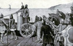 In order for Xerxes’ forces to cross safely and efficiently from Asia to Europe, he ordered that a bridge of boats be constructed across Hellespont, now known as Dardanelles, or the Strait of Gallipoli. Xerxes’ short temper was revealed when a storm interfered and blew several of the ships off course.