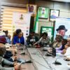 She sparkled up her look with gold jewelry, including hoop earrings and a chunky chain necklace.
