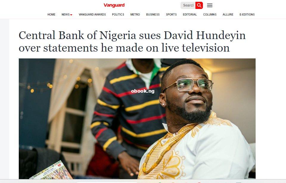 Central Bank of Nigeria sues David Hundeyin over statements he made on live television