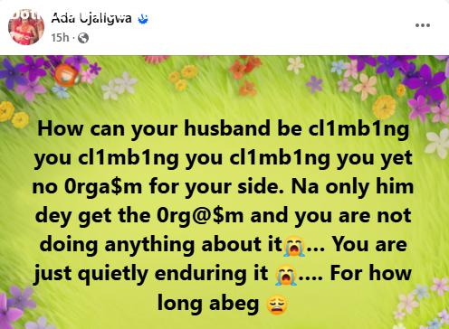 Nigerian doctor, Ada Ujaligwa, has addressed married women who have never reached orgasm with their husbands. The post For how long will you quietly endure? – Nigerian doctor addresses married women who don’t reach orga$m with their husbands appeared first on Time.com.ng.