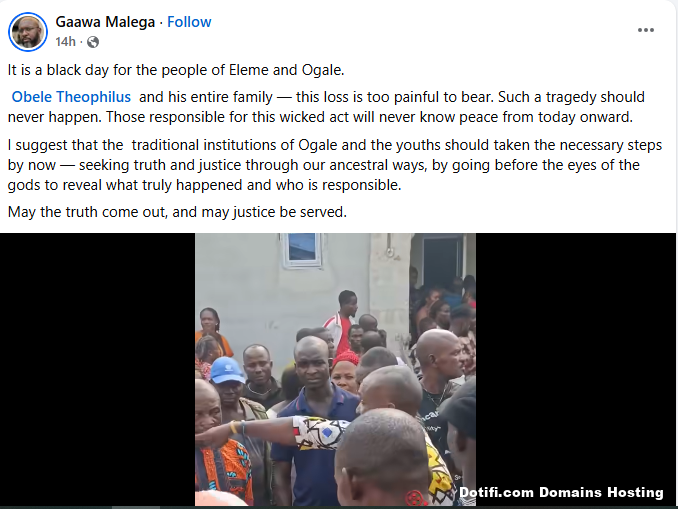 A family of six has been found d3ad in Ogale community, Eleme Local Government Area of Rivers State. The deceased, Obele Theophilus, his wife, children and brother-in-law, retired to bed on Saturday night but failed to wake up on Sunday morning, January 11, 2026.  Neighbours said concern grew when the family’s door remained locked as of 10 a.m.  After repeated knocks received no response, neighbours forced the door open and discovered the lifeless bodies. The man and children were found on the bed, the wife in the bathroom, while the brother-in-law was found close to the door, suggesting he may have tried to open the door. Community sources noted that the victims had planned to return to Port Harcourt after the holiday before the tragedy occurred. The cause of d3ath remains unknown, as no one has been able to provide clear details about the circumstances surrounding the incident.    The post Family of six found d3ad in an apartment in Rivers State appeared first on Time.com.ng.