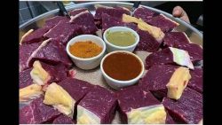 Kuai is a Korean dish made with raw beef, pork, or octopus. It is typically served with a spicy sauce made from gochujang (red pepper paste) and garlic.