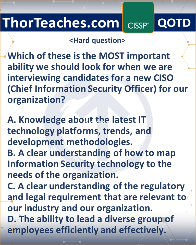 1. are these questions still relevant ? or do they need to be updated ? 2.Question below . are cissp questions going to be these vague in their options a data leakage does not necessarily mean sensitive data compared to a malware attack that downs the lan and people cant work so either the REAL […]