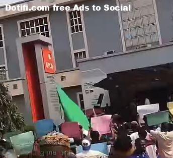 Protesters on Monday besieged the headquarters of Guaranty Trust Bank (GTBank) in Abuja, demanding the immediate release of popular social media activist Martins Otse, better known as VeryDarkMan (VDM).